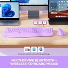About this item 【UNCOMPROMISING ERGONOMIC DESIGN】Director-B keyboard and mouse combo is meticulously engineered to prioritize your well-being and performance. Impeccably designed with integrated wrist rests and a contoured base, it promotes the ideal wrist and forearm positioning, effectively reducing fatigue and discomfort during prolonged work sessions. 【SEAMLESS MULTI-CHANNEL CONNECTIVITY】Empowered by a cutting-edge connectivity architecture, this combo seamlessly integrates 1x 2.4G channel and 2x Bluetooth channels. Effortlessly switch between devices – be it your computer, laptop, or Mac – to ensure uninterrupted productivity and a fluid workflow. Please note: The USB-C is not a receiver and cannot be used on its own, it is an adapter that needs to be plugged into a USB-A receiver in order to work. 【VERTICAL MOUSE】Departing from the conventional, our vertical mouse reimagines precision. It combines a natural palm orientation with precision-driven functionality, diminishing hand strain while elevating your accuracy to new levels, making it the ultimate choice for intricate tasks. 【ADJUSTABLE DPI MASTERY】Tailor your cursor control to perfection with adjustable DPI settings supporting 800, 1200, and 1600. Whether you're engaged in content creation, data analysis, or design work, expect unparalleled precision. 【CONVENIENT RECHARGEABLE MANAGEMENT】Bid farewell to the hassle of frequent battery replacements. Both the keyboard and mouse boast advanced lithium-ion batteries, offering enduring power. With a 300mA battery for the keyboard and a 400mA battery for the mouse, recharging is simple, ensuring uninterrupted productivity. 【FULL-SIZE AND SPLIT KEYBOARD VERSATILITY】Enjoy the versatility of a full-size keyboard, complete with an included USB-C adapter for effortless Mac and multi-device compatibility. It seamlessly adapts to various work settings. 【ENHANCED WORKFLOW WITH INTELLIGENT SHORTCUT KEYS】Unlock unparalleled efficiency with 16 meticulously designed shortcut keys at your fingertips. Streamline your workflow and effortlessly access commonly used functions, maximizing productivity. 【SLEEK AND ADAPTABLE AESTHETICS】Attention to detail shines through with a sleek and sophisticated exterior. Versatile for diverse work environments, whether it's a professional office or a cozy home workspace, it seamlessly integrates into your work-life balance.