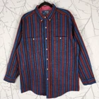 Mel Mat Blue Red Striped Heavyweight Cotton Flannel Shirt Men's L Chest: 24" Length: 33" Good Used Condition: no rips, marks or stains.