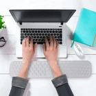 This keyboard wrist rest is a game-changer for long typing sessions! The memory foam feels incredibly soft yet supportive, easing wrist strain without sinking too much. The ergonomic shape fits naturally, and the non-slip base keeps it firmly in place. Love that it works with both keyboards and mice—durable fabric stays cool even after hours of use. A must-have for comfort at your desk!