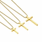 Men Cross Necklace Silver Gold Stainless Steel Boy Plain Pendant Cuban Chain