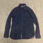 Men’s Authentic Burberry Brit Shirt Size Small Dark Blue Leather Patch Long Slv
