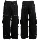 Elevate your wardrobe with the Tripp Apparel Men's Black Gothic Punk Pants, a perfect blend of style and comfort for the fashion-forward individual. Featuring an adjustable waist with straps, these pants offer a unique take on a classic style, catering to a variety of occasions from casual outings to more formal events. The solid black color and wide-leg design exude a sense of sophistication, while the cargo and slash pockets provide practical storage for your essentials. Crafted from premium cotton fabric, these pants promise ease of care and all-day comfort. Whether you're attending a business meeting or enjoying a night out, these versatile pants, with their reflective features and buckled accents, are a testament to alternative fashion. Handmade with care and available in a size 34 inseam, they are a distinctive addition to any collection.