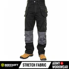 BEESWIFT KINGTON MULTI PURPOSE POCKET TROUSERS Work trousers with Cordura knee pad patch pockets Hardwearing Durable Fabric 98% cotton / 2% Lycra stretch fabric YKK Zip fastening with metal button waistband attachment 7 belt loops Triple stitching to main seams 2 front hip pockets 2 detachable tool (nail) pouches 1 multi cargo pocket to thigh, velcro fastening, including mobile phone pocket 2 rear patch pockets with velcro fastening Cordura knee pad pockets 1 Cordura rule pockets Cordura heel reinforcement 28 to 48 inch waist Regular Leg Tall Leg BEESWIFT KINGTON MULTI PURPOSE POCKET TROUSERS Work trousers with Cordura knee pad patch pockets Hardwearing Durable Fabric 98% cotton / 2% Lycra stretch fabric YKK Zip fastening with metal button waistband attachment 7 belt loops Triple stitching to main seams 2 front hip pockets 2 detachable tool (nail) pouches 1 multi cargo pocket to thigh, velcro fastening, including mobile phone pocket 2 rear patch pockets with velcro fastening Cordura knee pad pockets 1 Cordura rule pockets Cordura heel reinforcement 28 to 48 inch waist Regular Leg Tall Leg BEESWIFT KINGTON MULTI PURPOSE POCKET TROUSERS Work trousers with Cordura knee pad patch pockets Hardwearing Durable Fabric 98% cotton / 2% Lycra stretch fabric YKK Zip fastening with metal button waistband attachment 7 belt loops Triple stitching to main seams 2 front hip pockets 2 detachable tool (nail) pouches 1 multi cargo pocket to thigh, velcro fastening, including mobile phone pocket 2 rear patch pockets with velcro fastening Cordura knee pad pockets 1 Cordura rule pockets Cordura heel reinforcement 28 to 48 inch waist Regular Leg Tall Leg