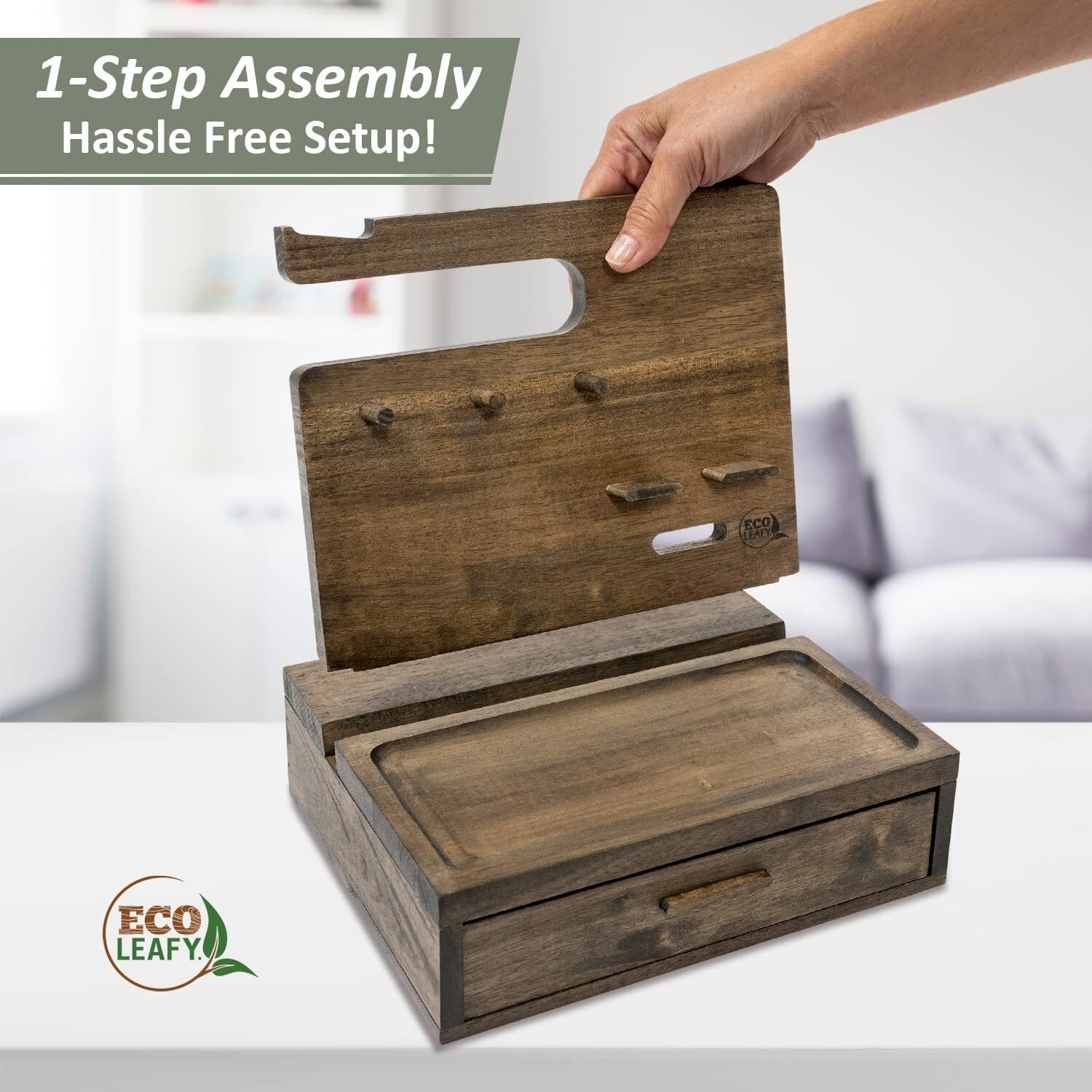 Nightstand Organizer Valet Tray for Men Birthday Gift for Men Best Gifts for Men Item Description About this item 【Organizing Made Easy】Dock your phone and declutter your stuff with EcoLeafy’s minimalist rustic wood docking station for men. It’s the perfect dresser top organizer for phones, watches, keys, wallets, headphones and more! 【Convenient Compartments】Your new phone docking station for men features a hidden drawer with 3 compartments to easily store and organize your small items including coins, rings, keys and anything else you want to keep safe and sound! 【Instant Assembly】With a ONE-step set-up, EcoLeafy’s minimalist mens nightstand organizer is instantly assembled and ready to use! Simply connect the backboard to the base and start organizing all your essential accessories. 【Great Gift for Him】Whether you’re looking for awesome Father's Day gifts, gadgets for men, or a perfect husband birthday gift, give the unique wooden docking station men will love! Includes beautiful, reusable calico bag and giftable kraft box. 【Sustainable Quality】EcoLeafy believes in designing aesthetic, functional and sustainable household products. That’s why our mens docking station and organizer is made with durable and sustainable rubber wood for a minimalist, rustic style that will last for years to come! Payment safe payment via eBay Shipping Free & Fast Shipping Return 30 Day's returns