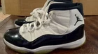 Elevate your sneaker game with these stylish and versatile Jordan 11 Retro High Concord sneakers. Designed with a lace-up closure, these shoes are perfect for any occasion, whether it's for activewear, casual wear, or workwear. The high-top shoe shaft style and solid pattern in a beautiful purple color make these sneakers a must-have for any sneakerhead. Crafted with a leather upper material and foam insole material, these shoes are built for comfort and performance. The rubber outsole material ensures durability, making them suitable for all seasons. These sneakers are perfect for basketball players and fans alike, with the Air Jordan product line and retro theme. READ SNEAKERS ARE IN USED CONDITION WITH PILLING ON THE INNER ANKLE AREA , OTHER THAN THAT THEY ARE IN VERY GOOD SHAPE.