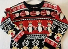 Men’s Ugly Christmas Sweater Reindeers Penguins Red Black White Festive Holiday Pre-Owned, very good condition. See photos for best representation and for measurements. Thank you for looking and supporting my small business!