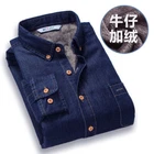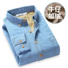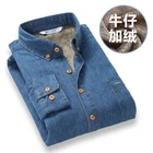 Mens Winter Jeans Shirt Warm Fleece Lined Velvet Denim Shirts Bottoming Shirt