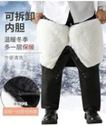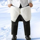 Mens detachable Real Wool Lamb Fur Lined fleece Long Straight Pants Thick Winter