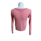 Make a festive statement with this playful pink sparkly sweater featuring a whimsical sequined Llama wearing sunglasses! The twisted front detail adds a modern, flattering touch. Perfect for holiday parties, casual Christmas gatherings, or adding some fun to your winter wardrobe. The soft knit material offers comfort while the sequin design brings the perfect amount of sparkle and cheer to any celebration. Style: Pullover Color: Pink Department: Women Type: Sweater Neckline: V-Neck Sleeve Length: Long Sleeve Pattern: Solid Features: Twisted Front, V-Neck, Sparkly Fabric, Holiday Design, Fitted Character: Llama Sleeve Type: Raglan Sleeve Fabric Type: Cotton/Rayon/Spandex Knit Accents: Sequins Condition: Good Preowned. A few sequins are missing. Please see all photos! Measurements approximate taken flat: Bust 17"/Waist 16.5"/Length 22" Keywords: christmas sweater, holiday pullover,reindeer, Llama, pink festive sweater, holiday party, winter fashion, novelty sweater, christmas outfit