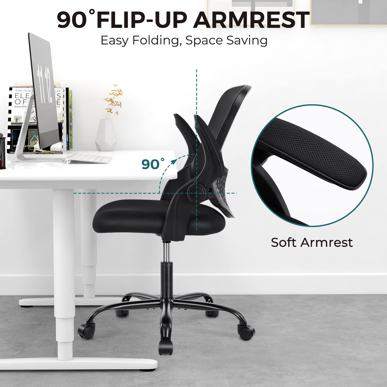 Ergonomic Design Office Chair: Ergonomic is one of the main design concepts for each single office chair. With the special curved lumbar support and armrest, you could relieve fatigue during working or studying on this computer chair. Desk Chair with Flip-up Arms: The Adjustable armrests can move up and down and the comfortable armrests can relieve the discomfort of the elbow area. After use, you can retract the arms and put the ergonomic office chair under the desk to save space. Breathable Padded Seat: The padded mesh seat is thick and resilient. The computer chair made of high quality thick sponge and breathable mesh cloth, preventing body heat and keeping your hip and legs sweat-free. Multi-Function & Easy to Set up: The height of the chair can be adjusted according to demand. It also features 360-degree rotation. The desk chair has a 120° tilt tension. Weight capacity: 250lb. Our desk chair comes with installation instructions, all hardware & necessary tools. Suitable for Various Occasions: It is a good choice to add one of our computer chairs to your office, home, bedroom, dorm, etc. It can go over any color and will take your space from boring to interesting.