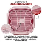 About this item Spatter less to keep your microwave clean; Microwave vegetable steamer lid has a steam release vent and anti sputtering heat resistant shield so food stays moist and doesn’t spatter when heating or reheating in the microwave Easy to use and convenient; Microwave steamer for vegetables with easy lift handles for effortless opening the lid; Designed with easy to snap latches Super easy to clean and to store; Travel anywhere with our microwave veggie steamer, thanks to its portable design allowing for ease of storage, while also saving time and space Convenient cooking system; Made of high impact built to last plastic; Healthy way to steam veggies and fish; retaining food nutrients; Steam fresh or frozen vegetables; Steam, reheat and store healthy meals Food and BPA safe, Top rack dishwasher safe, and can store food in your refrigerator or freezer; Measures 8- by 8- by 2.25- inch (20.3- by 20.3- by 5.7- cm); Perfect food cover that shields your microwave
