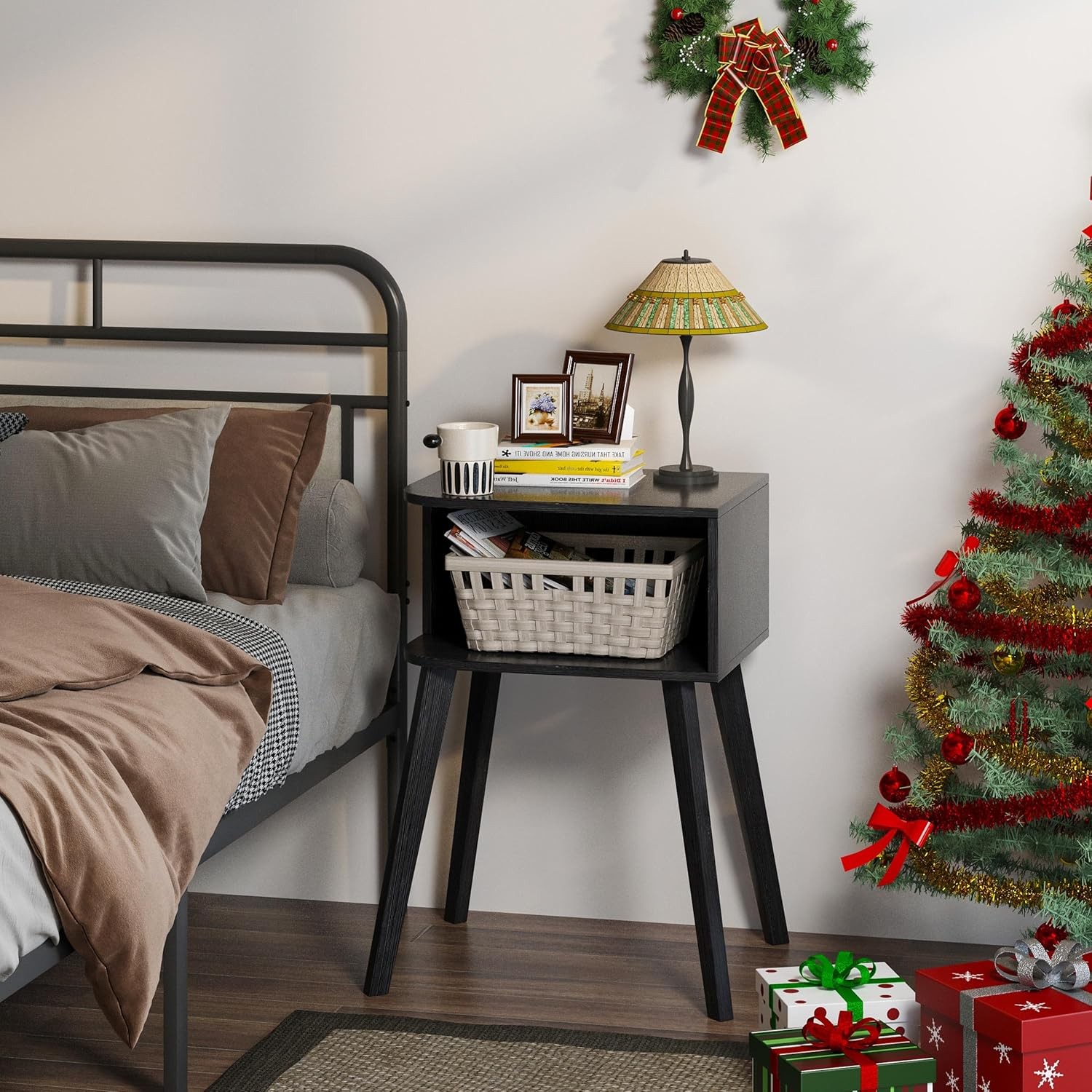 Multi-situation Use: This bed side table/night stand a 2-tier storage space, that is allowed to hold everything you need with easy reach, can be used as a sofa table, corner table, nightstand, coffee table, bedside table, laptop desk, or lamp table Sturdy and Stable: This small bedside table is made of premium MDF and density board to provide long-lasting durability and sturdiness; with a smooth and water-resistant coating which is easy to clean Dimensions : The size of this modern nightstand:11.8"Dx15.7"Wx 23.2"H. The lightweight and space-saving design of the small side table offers more convenience Ease to Assemble:The small end table comes with numbered parts and clear instructions, no other special tools are required, Everything is done in minutes you can quickly install the nightstand in little time 100% Satisfaction Service :We also provide you with spare screws, If you have any questions, concerns or suggestions, please do not hesitate to email us, We will solve all your problems as soon as possible