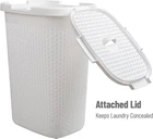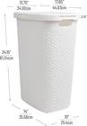 Product Dimensions 14"L x 10"W x 24.15"H Brand Mind Reader Color White Material Plastic Style 60 Liter Special Feature Lightweight,Portable,Durable Shape Rectangular Package Information Basket Closure Type Lid Included Components One 60 Liter Laundry Hamper About this item Plastic Spacious and Durable: This clothes hamper offers ample storage space, with a 60 liter capacity (15kg/33lb). Made of durable plastic, it is built to withstand frequent use Convenient Portability: The cut-out handles provide a comfortable grip, making it easy to transport the hamper to the laundry room or laundromat Neat and Tidy: The hinged lid of the hamper allows you to keep your laundry neatly covered, maintaining a clean and organized appearance in your bathroom or bedroom Ventilated Design: The premium wicker style of the hamper features a ventilated design that allows air to circulate Perfect Size: With dimensions of 17.65 inches long x 13.75 inches wide x 24.15 inches tall (44.83 x 34.92 x 61.34 centimeters) at the top, this tapered clothes hamper is designed to fit into small spaces while still providing ample storage capacity Product Description Versatile Heavy-Duty Hamper: Declutter with Style and Ease Effortlessly manage your laundry or store various items with our durable and stylish hamper. Boasting a robust construction, this hamper can securely hold up to 60 liter (15kg/33lb) of clothes, toys, sports gear, crafting supplies, or linens. Its slender and tapered design fits comfortably into various spaces, making it perfect for use next to your washing machine, in your bathroom, or tucked away in a closet. Our hamper's premium wicker design not only adds a touch of elegance but also provides adequate ventilation, allowing your garments to breathe. The hinged lid is easy to snap into place upon arrival, ensuring a seamless setup experience. To clean, simply wipe it down with a damp cloth and mild soap. Whether you need to clear up clothes clutter from your floor, store seasonal clothing, or transport laundry up and down the stairs, this hamper is up to the task. Thanks to the portable, lightweight design and convenient cut-out handles, carrying a full basket is a breeze, whether you're headed to the laundry room, the laundromat, or back home from college. With its versatile utility and stylish appeal, our heavy-duty hamper is the perfect storage solution for any room. Product information Technical Details Product Dimensions 14"L x 10"W x 24.15"H Brand Mind Reader Color White Material Plastic Style 60 Liter Special Feature Lightweight,Portable,Durable Shape Rectangular Package Information Basket Closure Type Lid Included Components One 60 Liter Laundry Hamper Size Single Number of Pieces 1 Number of Compartments 1 Mounting Type Floor Mount Pattern Hamper Item Weight 4.1 Pounds Capacity 60 Liters Recommended Uses For Product Storing and transporting laundry, toys, sports gear, crafting supplies, and linens Room Type Laundry Room, Bathroom, Bedroom, Nursery Room Global Trade Identification Number 00887530036309 Manufacturer EMS Mind Reader LLC UPC 887530036309 Part Number 60HAMP-WHT Item Weight 4.1 pounds Country of Origin Israel Item model number 60HAMP-WHT Item Package Quantity 1 Special Features Lightweight,Portable,Durable Batteries Required? No On Feb 12, 2025 at 19:15:22 PST, seller added the following information: