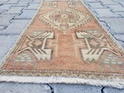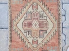 Mini Turkish Oushak Rug β 1.4x3 ft, Terracotta Orange & Cream, Geometric Medallion Handwoven Wool Rug β Tribal Anatolian Motifs with Warm Vintage Charm This handwoven Turkish rug features a vivid terracotta orange field with a large diamond-shaped medallion in soft beige. At both ends, stylized bird-like tribal motifs create a unique and balanced composition. Muted blue-grey and warm brown accents provide subtle depth, while the washed texture adds authentic vintage appeal. Crafted from 100% natural wool and plant-based dyes, this rug is a warm and eye-catching piece ideal for entryways, kitchens, or rustic interiors. Product Details: π Origin: Turkey π Material: 100% natural wool, vegetable-dyed π Weaving: Handwoven, vintage style π Pattern: Geometric central medallion with tribal bird motifs π Colors: Terracotta orange, beige, brown, blue-grey π Condition: Washed and aged β vintage patina π Size: 43 x 91 cm π Shipping: Free worldwide shipping in 1β3 business days π Returns: 30-day return policy π¬ Feel free to message us with any questions!