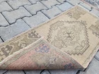 Mini Turkish Oushak Rug β 1.5x3 ft, Beige with Soft Browns, Faded Medallion Style Handwoven Wool Rug β Vintage Minimal Look with Washed Traditional Motifs This subtle and refined Turkish Oushak rug features a soft beige field with a faded central medallion and muted corner motifs. The palette includes gentle brown outlines, olive green accents, and light cream highlights, giving the rug a washed and vintage texture. Crafted from natural wool and dyed with plant-based pigments, this piece offers a quiet elegance perfect for minimalist, rustic, or bohemian interiors. Its compact size makes it ideal for entryways, bedside, or accent layering. Product Details: π Origin: Turkey π Material: 100% wool, vegetable-dyed π Weaving: Handwoven, vintage style π Pattern: Faded medallion and traditional corners π Colors: Beige, soft brown, olive green, cream π Condition: Washed and gently aged π Size: 45 x 94 cm (1.5 x 3 ft) π Shipping: Free worldwide shipping in 1β3 business days π Returns: 30-day return policy π¬ Feel free to contact us if you have any questions!
