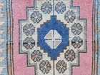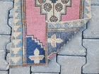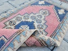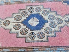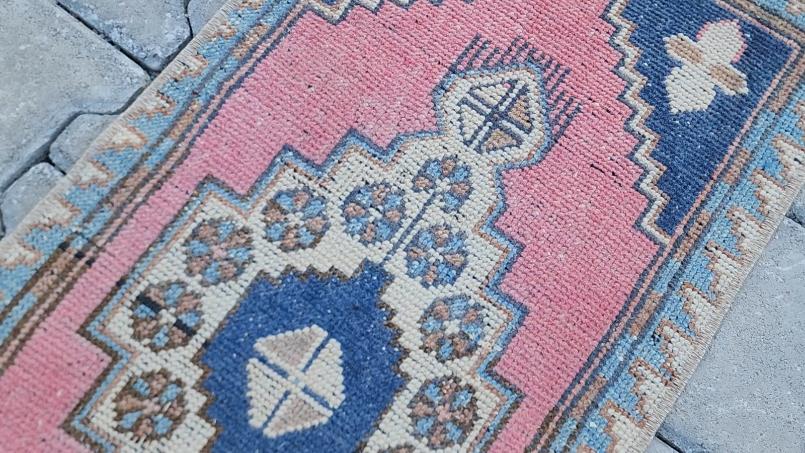 Mini Turkish Oushak Rug β 1.5x3 ft, Pink and Navy, Floral Medallion Tribal Style Handwoven Wool Rug β Vibrant Color Mix with Vintage Anatolian Charm This Turkish Oushak rug features a vivid design with a dusty pink field and a navy central medallion. Surrounded by floral rosette motifs and framed by blue and cream tribal borders, this piece blends traditional Anatolian style with bold, energetic tones. Handwoven from natural wool and dyed with plant-based pigments, it has a soft vintage texture that fits well in bohemian, eclectic, or rustic interiors. Ideal for small spaces like entryways, kitchens, or layered decor. Product Details: π Origin: Turkey π Material: 100% wool, vegetable-dyed π Weaving: Handwoven, vintage style π Pattern: Floral medallion and geometric frame π Colors: Dusty pink, navy blue, cream, brown, light blue π Condition: Washed and softened with vintage character π Size: 45 x 93 cm (1.5 x 3 ft) π Shipping: Free worldwide shipping in 1β3 business days π Returns: 30-day return policy π¬ Feel free to contact us with any questions!