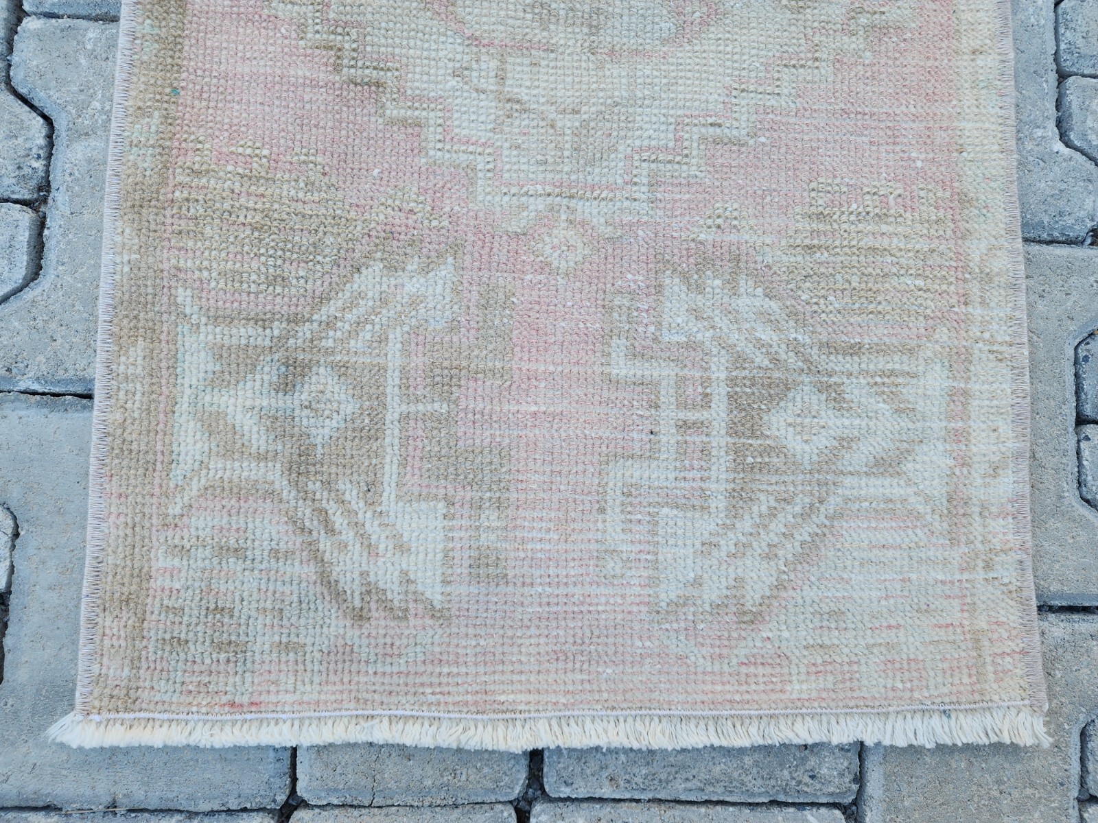 Mini Turkish Oushak Rug β 1.6x2.7 ft, Washed Beige & Blush, Faded Geometric Medallion Soft Vintage Handwoven Rug β Subtle Boho Accent for Entryway or Decor Corners This charming vintage Turkish rug showcases a gently faded beige base with soft blush and light green accents. A large central geometric medallion is framed by corner motifs in muted earthy tones, giving the rug a subtle and airy character. Perfectly distressed for a modern vintage look. Handwoven from wool and vegetable-dyed yarns, this piece is ideal for cozy entryways, bohemian decor corners, or as a delicate accent in bedrooms and hallways. Product Details: π Origin: Turkey π Material: 100% wool, vegetable dyes π Weaving: Hand-knotted vintage rug π Pattern: Geometric medallion with traditional corner motifs π Colors: Beige, blush, pale green, washed brown π Condition: Distressed / gently faded π Size: 48 x 84 cm (1.6 x 2.7 ft) π Shipping: Free worldwide shipping in 1β3 business days π Returns: 30-day return policy π¬ Feel free to message us with any questions!