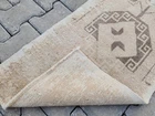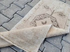 Minimal Turkish Rug – 1.6x3.4 ft, Cream with Brown, Subtle Tribal Symbol Handwoven Wool Rug – Washed Look with Faded Motif and Soft Texture This handwoven Turkish rug showcases a minimal tribal design on a soft cream background. A central geometric figure—reminiscent of protective tribal motifs—is faintly outlined in brown, paired with floral symbols at the top. The muted tones and washed texture give this piece a calm and understated character. Woven from 100% natural wool and dyed with plant-based pigments, this rug has a naturally aged look. Its narrow size makes it ideal for hallways, entryways, or Scandinavian-style interiors. Product Details: 📌 Origin: Turkey 📌 Material: 100% natural wool, vegetable-dyed 📌 Weaving: Handwoven, vintage style 📌 Pattern: Minimal tribal symbol and top floral motif 📌 Colors: Cream, soft brown, natural beige 📌 Condition: Gently faded, aged look 📌 Size: 50 x 104 cm (1.6 x 3.4 ft) 📌 Shipping: Free worldwide shipping in 1–3 business days 📌 Returns: 30-day return policy 💬 Feel free to contact us with any questions!