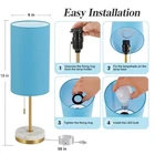 Return Policy Fast Delivery Trusted seller Minimalist Table Lamp Set of 2, Nightstand Lamp for Bedroom Living Room, Modern Pull Chain Bedside Lamp with Marble Base, Fabric Shade, Small Desk Lamp for Home, Office, Reading,Blue Product Description 【Minimalist Lamp for Small Spaces】Lamps dimensions - 18 x 6x 6inches, the marble table lamps are small in size so they can fit anyw in your house. Table lamp for living room, bedroom, dorm, study room, guest room, kids room and so on. With a white linen shade and marble + metal base, the small table lamp is exquisitely crafted and ideal as a gift for family and friends. 【Reading Lamp with Marble Base & Eye Caring Shade】 The night lamp with high quality Marble + Metal base which have upgraded finish is anti-rust and corrosion free. The heavy base can prevent it from tipping or wobbling and the thick pole design will hold the lamp shade steadily, no shaking. Besides, the fabric shade make the lamp spreads relaxing, comfortable, evenly and soft lighting, which creates a comforting ambience to protect your eyes. 【Gold Lamp Table with Pull Chain 】 The pull chain switch is easy to operate, just pulling. This office lamp has an E26 standard base socket. You can customize your stylish lighting with different shapes or different colors of any E26 base light bulbs to create your unique decoration. (Bulbs not included) 【Easy to Install & Heavy Base】You can easily complete it in just a few minutes. (Tips: the base of each study lamp is made of natural marble, so the textures may be inconsistent or less, which makes each lamp unique.)Metal&Marble base will not shake easily,The base contains non-slip pads to prevent accidental tipping. 【No-worry Buy】: Each product has been well tested by the manufacturer to ensure high-quality product before being shipped. If you have any questions about our lamps, please contact us, we will provide you with the fastest and friendly service within 24 hours. Shipping Returns Payment Shipping Shipping is FREE to all addresses other than APO/PO boxes in the lower 48 states. All our stock ships from US-based warehouses. Shipped via USPS or UPS (depending on location and package weight) Unless stated otherwise, all orders will ship within 24-72 hours of your payment being processed. Check our feedback to see the great reviews of FAST shipping we offer. Returns Seller does not accept returns Payment We currently accept payment via eBay managed payments only. Once payment is cleared, we will dispatch your shipment within 1-3 business days. Please refer to the "Shipping" tab for more information regarding shipping speed to your destination.