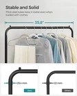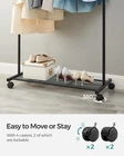 [Storage Aplenty] This 15.9"D x 35.8"W x 62.2"H metal clothes rack serves as an extension of your closet, adding tons of hanging space to keep up to 40 shirts in order [Sturdy and Durable] 25.4 mm dia. steel tubes connected by screws make a sturdy clothing rack that holds up to 88 lb and gives your heavy clothes stable support for years to come [With Storage Shelf] The bottom mesh shelf holds up to 22 lb, making it perfect for your shoes and storage boxes. The mesh is closely spaced, so even your high heels can find a place here [Easy to Move] 4 universal casters, including 2 with brakes, make it easy for you to move this garment rack from your bedroom to your coatroom and lock it in place as you need [Easy to Assemble] Labeled parts and illustrated instructions allow you to easily set up this clothes rack with wheels so you can quickly have more space to tidy up your clothes