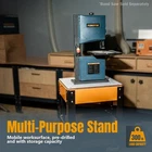 INCLUDES: Planer Table Stand, MDF top, Heavy Duty Frame and Rails, Integrated Mobile Base w/ Wheels, levelers, a lever activated caster assembly, and Hardware FUNCTION: Provides sturdy and stable platform with a safe and secure work surface for a wide range of planers. It also allows accommodates other tools, and allows them to be easily moved around the workshop FEATURES: An melamine MDF tabletop that provides a durable and reusable work surface, and the pre-drilled holes allow for quick and easy mounting of the planer to a stand, plus wheels, levelers and a lever activated caster that gives this mobile planer stand easy movement and portability. To fit your shop requirements, the lever can be mounted either inboard or outboard of the stand. (Melamine table top offers partial water resistance that is easy to clean and helps avoid warpage) MULTI-PURPOSE: Ideal for supporting a variety of smaller, compact benchtop machines, power tools and accessories. Also compatible with the majority of major brand name planers and saws DIMENSIONS: Top (covered in Melamine) 23-1/16" x 20-1/8" | Height (with top) 29.5" | Shelf 23-7/16” x 15” | Shelf height 11-3/4" | Weight 53.3 lbs