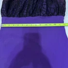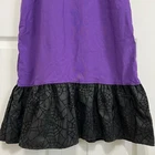 Approximate measurements: Across underarms - 16" Waist - 14" Length - 43" -pullover styling, stretchy fabric, satin fabric to the chest with mesh overlay, elastic neckline and sleeves, velvet spider web detailing to the ruffle trim -tiny spots/marks on the upper back as pictured -Made in USA Great preowned condition