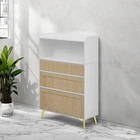 Product Description About this item MODERN STORAGE SOLUTION: This versatile white kitchen hutch combines style and functionality with sleek lines and minimalist design. Features two smooth-gliding drawers, a textured glass cabinet door, and multiple open shelves to organize and display your essentials INTEGRATED POWER ACCESS: Built-in USB ports and electrical outlets in the upper section let you conveniently charge devices or power small appliances, making this cabinet perfect for modern living needs while keeping cords organized QUALITY CONSTRUCTION: Crafted from solid pine wood frame with MDF and particle board panels for reliable stability. Black hardware accents provide elegant contrast against the clean white finish, complementing any home décor VERSATILE PLACEMENT OPTIONS: Measuring 47.24"W × 15.75"D × 59.06"H, this slim sideboard fits perfectly in kitchens, dining rooms, hallways or living spaces as a buffet server, pantry cabinet, entertainment center, or decorative display unit AMPLE STORAGE CAPACITY: The combination of enclosed storage behind the ribbed glass door, two spacious drawers, and multiple open shelves provides 109 lbs capacity Specifications: -Main Material: Particle Board+MDF+Pine Wood -Product Dimensions: Assembled Length (in.):35.43 Assembled Width (in.):13.78 Assembled Height (in.):59.06 -Product Weight (lbs.):90.00 -Assembly Required: Yes 1. The color of the actual product may differ from the image due to the lighting or the monitor’s display. 2. Manual measurement has been used; there may be some reasonable error. Package includes: 1 x Storage Cabinet