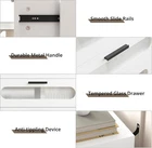 Product Description About this item 【Ample Storage Space】4 deep drawers and a wide desktop provide ample space for sorting and organizing daily necessities such as cosmetics, daily accessories, books, toys, etc., always keeping the room clean and tidy 【Modern Minimalist Style】The drawer dresser adopts a translucent glass pattern design, adding a hazy beauty to your home. No matter where you place it, it can perfectly blend into different styles of home decoration 【Multi-purpose】This white dresser is versatile and can be used as a drawer cabinet in the living room, a console cabinet in the hallway, and a tall dressing table in the dining room or office, adding a finishing touch to any room 【High-quality Materials】This wooden chest of drawers is made of sturdy medium-density fiberboard, which is waterproof and easy to clean. Equipped with an easy-to-grip black metal handle, each drawer opens smoothly and easily 【Easy to Assemble】Dimensions: 23.5"W x 15.7"D x 31.5"H. We provide all necessary accessories and detailed assembly instructions. If you have any questions, please feel free to contact us and we will provide you with solutions Modern Chest of Drawers with Deep Drawers The drawer dresser adopts a translucent glass pattern design, adding a hazy beauty to your home. No matter where you place it, it can perfectly blend into different styles of home decoration. Ample Storage Space 4 deep drawers and a wide desktop provide ample space for sorting and organizing daily necessities such as cosmetics, daily accessories, books, toys, etc., always keeping the room clean and tidy. Previous page Next page