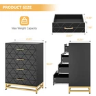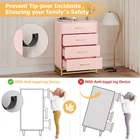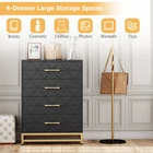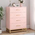 Product Description Introduction: 【Unique Design】: The white/pink/black finish, gold handles, and then adding concave and convex lines to the simple engineered wood panel, which is making this dresser for bedroom even more unique and charming, with a certain sense of fun and premium beauty. It can easily match any interior style, providing a simple, spacious organizer and storage solution for your home. 【4 Drawer Ample Storage Space】: This white/pink/black dresser has 4 spacious drawers that provide ample storage space to sort and store your and your family's clothes, makeup, photo albums or other personal items. Make your room more neat and beautiful. 【Sturdy and Stable】: This white/pink/black dresser for bedroom is made of high quality certified MDF and tapered metal legs for sturdy and durable finish. Each drawer is equipped with smooth sliding system, making this 4 drawer dresser waterproof, scratch-resistant, wear-resistant, easy to push and pull, durable and easy to clean. Metal tapered legs provide stable and secure support for the entire dresser. so you can rest assured that you will have years of use. 【Multi Purpose Dresser】: Offers a variety of placement options for your room, not only as a storage cabinet in the bedroom, but also as a home decoration, he can be placed in the living room, bedroom, hallway. 【Assembly and Customer Service】: From the customer's point of view, we use the most simple and convenient way to satisfy customers. The dresser has clearly-labeled assembly parts and illustrated instructions, which can make assembly fast. Quality assurance, if you have any questions or suggestions, please feel free to contact us, we will do our best to make customers satisfied.