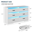 6 Drawer Dresser: The dimensions of the dresser are 46.8*15.6*31.5 inches, with the big drawers measuring 23.4*15.6*9.3 inches. With strong load-bearing capacity, It offers versatile functionality, serving as a clothes chest dresser in the bedroom, a TV stand in the living room, or a toy storage cabinet in the kids' room RGB Human Sensor Light: This modern dresser features an RGB lighting design, with each drawer emitting different colors of light, making it very cool. We have three ways to control the lighting: manual touch adjustment, remote control, and human body sensing design, fully demonstrating the intelligent features of this modern home Wireless Charging Station: The tall dresser features a built-in wireless charging, allowing you to charge your phone anytime, anywhere without the need to search for outlets. The USB and type-C charging ports help avoid messy wires, making your home tidier and more convenient Sturdy and Durable: Each drawer features smooth slide rails, making opening and closing effortless and smooth. Wooden dresser is constructed from durable MDF, guaranteeing long-term use and resistance to scratches. Additionally, it is waterproof and easy to clean. The free-standing design provides great stability and is not easily tipped over Easy Assembly & After-service: We come with detailed installation instructions step by step, spare parts are coded, precise hole locations make installation more accurate and faster. If you have any questions about the product, please do not hesitate to contact us Modern Bedroom Dresser with Charging Station RGB White Dresser for Bedroom Tall Large Storage Dresser for Bedroom Modern 6-drawer Chest Suits Any Home Decor