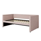 Modern 81.9" Twin Size Upholstered Daybed with Twin Trundle for Guest Bedroom Features Excellent Design:Ideal for small spaces, this multifunctional furniture serves as a cozy lounging area by day and transforms into an inviting guest bed with its convenient roll-out trundle. Nailhead trim: Curved arms decorated with nailhead trimming blends chic details with classic style. This daybed lends a sophisticated air to your home. Sturdy construction: Crafted with a solid and engineered wood frame, this daybed offers a strong foundation that can support daily use. Twin trundle included: The pull-out trundle allows for extra overnight guests or additional sleeping space as needed. Tucks away neatly when not in use. Comfort and support: The daybed is fitted with a series of slats to support your choice of mattress, eliminating the need for a box spring. Description This day bed frame effortlessly combines exceptional comfort, and efficient use of space with a refined, laid-back aesthetic. Its defining feature is the grounding solid wood base, which adds an earthy allure to your space. Trundle feature The daybed includes a hidden trundle that rolls out smoothly to provide additional sleeping space. Strong support system The included sturdy wooden slats eliminate the need for a box spring while providing reliable support. Multi-functional design Easily converts into a sofa, lounger, or bed for the ultimate flexibility. Perfect for small spaces. Product details: Weight Capacity 330 LBS Frame Material Pine wood + MDF Fabric Material Linen Assembly Required Yes Recommend Mattress 6''