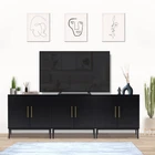 2 door storage cabinet will be home art design and multi-purpose combination, make your life delicate and convenient. This black wood storage cabinet fits nicely with any decor and can be used in the bedroom, dining room, or living room to create stylish additional storage. It is not only a practical piece of furniture, but also a modn decoration of the room. You can put books, duvet covers or toys inside the wooden cabinet, make your space organized and comfortable. 【Larger Storage Space】The credenza has 2 widened and enlarged shelves provide spacious storage space for your daily storage. You can also buy two storage cabinet to form together. Used to store organizing for your trivial sundries and meet your storage needs in every possible way. Product Dimensions:15.7"D x 31.1"W x 31.5"H. 【P2-grade Materials】This buffet cabinet with storage is made of thick premium MDF wooden, scratch-resistant and water-resistant, easy maintenance and clean. Also have undergone multiple tests of strict selection and load-bearing, so you can rest assured that you will have years of use. 【Modern Design】Accent cabinet with gold handle and black legs improve more modern style to your room. Anti dumping device on the back of the sideboard cabinet to ensure the safety of kids or pets. A waterproof desktop will perfectly for you to display your favorite decorations and collectibles. 【Multifunctional Cabinet】Sideboard and buffet with storage provides solid stability for ample load bearing and spacious storage space. The entryway cabinet can be used as a perfect black accent cabinet for your bedroom, hallway or as a TV stand for the living room. Also you can use it as coffee bar or office storage in your room. 【Assembly with Clear Instruction & Customer Support】We are equipped with accurate installation instructions for assembly. It is recommended that two people install this buffet cabinet together. If you have any questions, we will reply to you within 24 hours and we won't let our customers down.