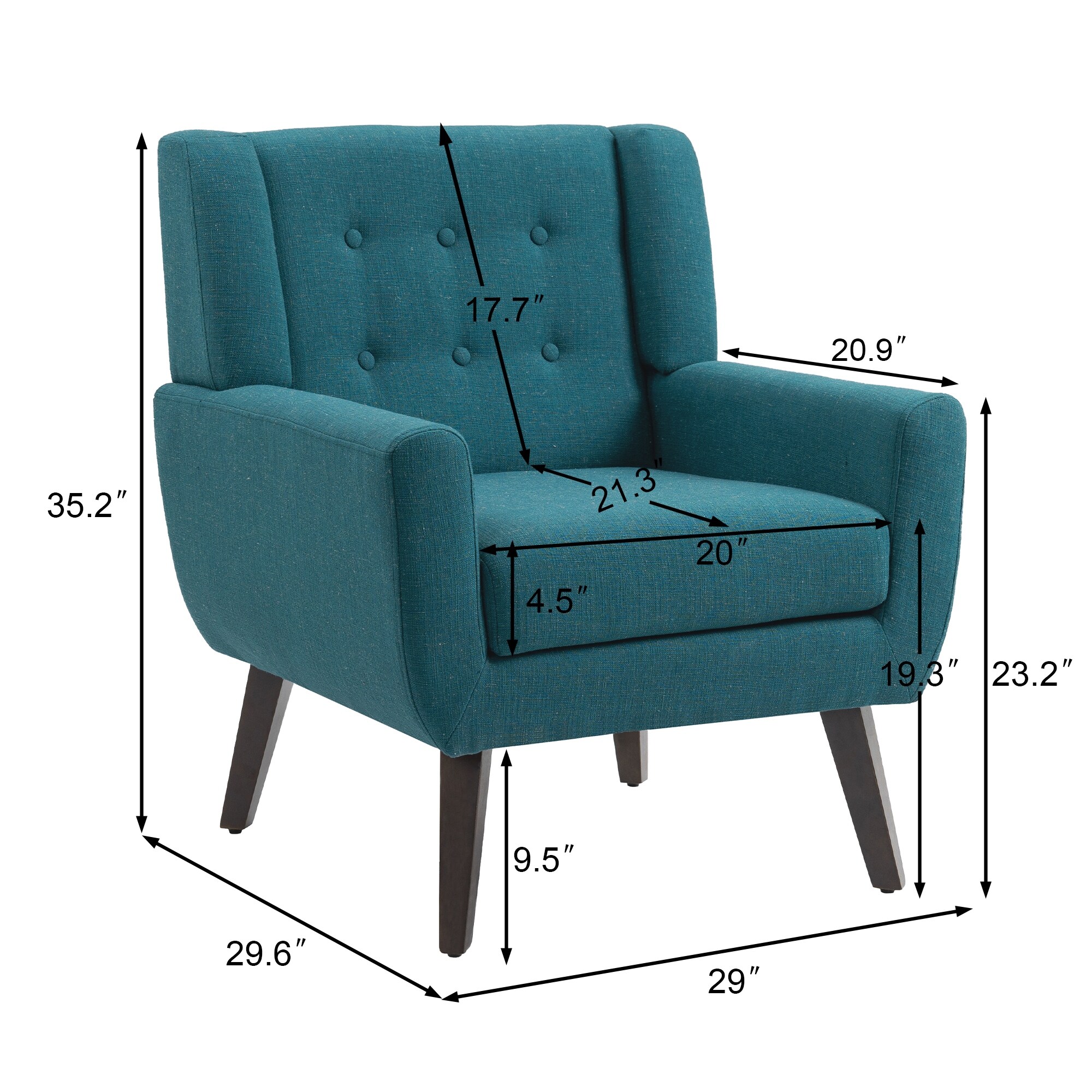 Enhance the comfort and style of your living space with our Modern Accent Chair upholstered in high-quality Cotton Linen fabric. This versatile armchair with solid wood frame and tufted back design is perfect for creating that cozy reading nook, providing extra seating in your living room, or adding a statement piece to any room in your home. With removable cushion covers and solid wood legs featuring a brown finish, these chairs are both functional and stylish.Features: Tufted back design Solid wood frame for durability and stability Cotton Linen upholstery for a comfortable seating experience Removable cushion covers for easy cleaning Solid wood legs with a brown finish add a touch of elegance Product weight: 38.6lbs Product dimensions: 27.3"D x 27.3"W x 34.2"H Weight Capacity: Free Shipping Over $49.99* Details Modern Accent Chair Cotton Linen Upholstered Chair for Living Room Product Description: Enhance the comfort and style of your living space with our Modern Accent Chair upholstered in high-quality Cotton Linen fabric. This versatile armchair with solid wood frame and tufted back design is perfect for creating that cozy reading nook, providing extra seating in your living room, or adding a statement piece to any room in your home. With removable cushion covers and solid wood legs featuring a brown finish, these chairs are both functional and stylish. Features: Tufted back design Solid wood frame for durability and stability Cotton Linen upholstery for a comfortable seating experience Removable cushion covers for easy cleaning Solid wood legs with a brown finish add a touch of elegance Product weight38.6lbs Product dimensions27.3"D x 27.3"W x 34.2"H Weight Capacity440 lb.