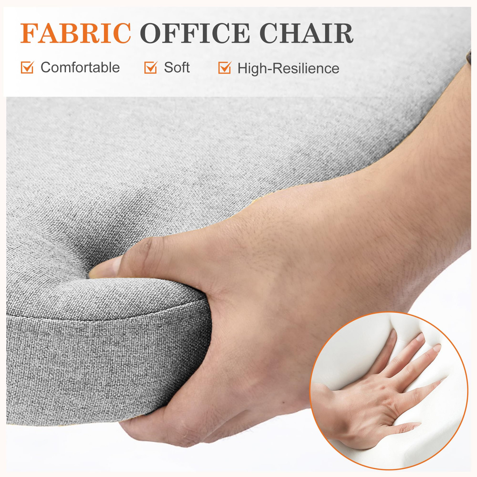 This chair is a game-changer for my home office! The fabric is soft yet durable, and the foam cushion keeps me comfortable for hours without sinking. The curved backrest perfectly supports my lower back, reducing strain during long work sessions. I love how smoothly it swivels and adjusts to my ideal height—so convenient! It’s stylish, sturdy, and worth every penny for anyone needing all-day comfort.