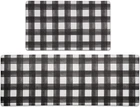 Modern Farmhouse Buffalo Plaid- Immerse your home in the timeless charm of our kitchen mat featuring a neutral color palette and a touch of rustic sophistication. Our buffalo plaid kitchen mat features a classic pattern that effortlessly blends contemporary style with timeless elegance. Versatile and classic, this plaid design will surely complement any contemporary or classic-style homes. Soft & Comfortable - The anti-fatigue cushioning provides unparalleled comfort and support for your feet, so you can stand at the kitchen sink or stove for hours without any discomfort. Easy Wipe Clean - The water and stain-resistant material of our kitchen mat makes wiping it down a breeze. It's easy to clean with just a damp cloth or common detergent, and you'll love how it always looks clean and new. Non-slip Backing - Our kitchen mat is designed with an anti-slip backing that provides safe footing for your family. It keeps the mat securely in place, preventing slips and falls on any surface. Built to Last - Our kitchen mat is made from premium quality materials and oeko tex 100 certified. Designed to withstand daily wear and tear, this kitchen rug is an ideal choice for high-traffic areas in your home or workplace. With its superior craftsmanship, our mat will remain in great condition for years to come. Product description Not Your Average Kitchen Mat Chic Buffalo Plaid Design The unique design of our kitchen mat is sure to turn heads in any kitchen. With its stylish pattern and well-thought colors, it adds a touch of style that's missing from other kitchen mats on the market. Perfect in front of the kitchen stove, laundry room or as office standing mat Easy Wipe Clean With the spill proof material, wipe clean with your favorite all purpose cleaner or mild dish soap and dry with a cloth. Anti-Slip Backing The anti-slip backing ensures that the mat stays firmly in place, even on slippery surfaces like wood, ceramic, or marble. Comfortable & Anti-Fatigue This mat provides ample support for your feet, knees, lower back, and joints, reducing fatigue caused by standing for extended periods in the kitchen. Versatile 2-Piece Set Comes in different colors and measures at 17"x47"+17"x30", our mat set is perfect for anyone who's looking for comfort, style and functionality.