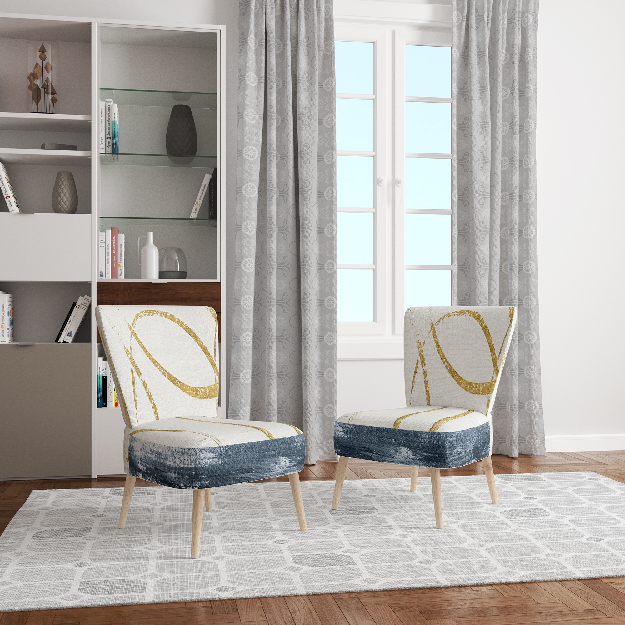 Use Designart's modern upholstered chair to bring a glamorous accent to your contemporary aesthetic. The sleek armless design makes this side chair ideal for smaller spaces, and the strong hardwood frame provides sturdy support. Rich shades of gold and grey stay vivid thanks to the use of high-density Italian inks in the printing process. Soft polyester fabric, a semi-firm foam-padded seat, and a high back combine in this 'Gold Abstract Geometric Shape' chair to create a comfortable place to unwind and relax at day's end.Features:1 Accent chair includedFoam Filled SeatingSide Chairs : 32.5in high x 22.5in deep x 27.5in wideSlipper Chair : 32in high x 21in deep x 25in wideArm Chair : 32in high x 23in deep x 23in wide Free Shipping Over $49.99* Details Designart "Gold Abstract Geometric Shape" Upholstered Modern Accent Chair - Arm Product Description: Use Designart's modern upholstered chair to bring a glamorous accent to your contemporary aesthetic. The sleek armless design makes this side chair ideal for smaller spaces, and the strong hardwood frame provides sturdy support. Rich shades of gold and grey stay vivid thanks to the use of high-density Italian inks in the printing process. Soft polyester fabric, a semi-firm foam-padded seat, and a high back combine in this 'Gold Abstract Geometric Shape' chair to create a comfortable place to unwind and relax at day's end. Features: 1 Accent chair included Foam Filled Seating Side Chairs 32.5in high x 22.5in deep x 27.5in wide Slipper Chair 32in high x 21in deep x 25in wide Arm Chair 32in high x 23in deep x 23in wide