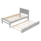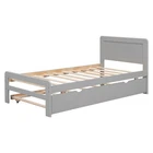 Wood Bed Frame Modern Design Twin Size Platform Bed Frame with Trundle Gray Features [Superior Quality]: This bed is made of sturdy and high-quality materials, including rubberwood, plywood, MDF, and PB board. It is able to enhance stability and durability as well as ensure a long lifespan. *Details*: the headboard is made of rubberwood and MDF, the footboard is made of rubberwood, the siderail and all of slats are made of plywood, and the trundle are made of PB and rubberwood. [Modern & Clean Design]: The concise design and elegant appearance of the bed add a modern and airy feel that is perfect for various room styles. [Space-saving]:This bed includes twin-size trundle bed underneath and can easily be rolled in and out for extra sleeping space. It is the ultimate choice for any bedroom. [No Box Spring Needed]: This bed includes solid wood slats, which do not require a box spring, and a mattress can be put on the slats directly (Mattress is NOT included). [KD Easy Assembling]: Our bed frame comes with a clear assembly instruction that will guide you through all steps. [Overall Product Dimension]: 77.50"L x 41.70"W x 35.40"H. Mattress not included. Slats are included and do not require a box spring.