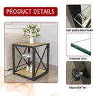 Set of 2 Modern End Table Nightstand Industrial Style Side Table for Bedroom Features 1. Stable Structure & Modern Aesthetics:Crafted from premium MDF and a sturdy metal frame, this piece features a tempered glass layer that is smooth, scratch-resistant, and effortless to clean. The innovative X-frame structure not only adds visual depth but also reinforces structural stability, delivering exceptional load-bearing capacity and long-lasting durability. 2. Space-Saving Compact DesignDimensions: 17.72"L × 17.72"W × 21.07"H.Load-bearing capacity: 110lbs. Its compact form adapts seamlessly to corners in living rooms, bedrooms, or home offices, maximizing space efficiency without sacrificing style or functionality. 3. Smart Tiered Storage System:With its practical 3-tier design, this organizer stores books, remotes, and stationery efficiently – keeping daily essentials at hand without compromising your tidy space. 4. Vintage Industrial Charm with Versatility:The fusion of Natural Wood MDF and industrial metal piping offers warmth and rugged elegance. It blends harmoniously while serving as a striking accent piece. 5. Hassle-Free Assembly:All hardwares and accessories are provided. It comes with easy-to-follow instructions.