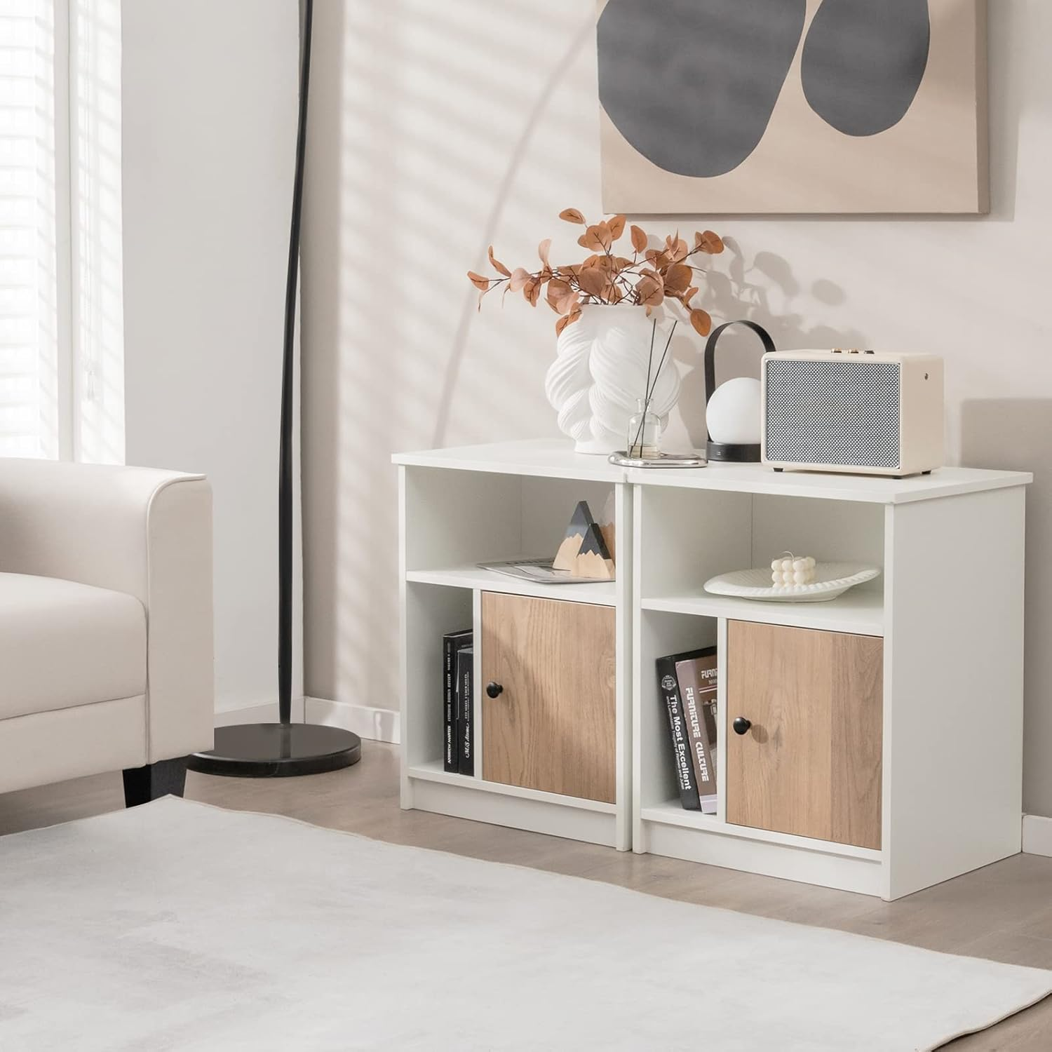 Store New Arrivals Add to Favorite View Feedback Contact Nightstand Set of 2, Sofa Side Table with Open & Enclosed Storage, Cable Management, Modern Bedside Storage Cabinet, End Table for Bedroom, White Description Collapsed Length Minimum 25 Inches Number of Doors 1 Furniture Finish Melamine Veneer Number of Items 2 Item Width 19.5 Inches Material Type Engineered Wood Is Stain Resistant Yes Theme Modern & Minimalist Model Number 10574NAJV2-GL Item Type Name nightstand Frame Material Type Engineered Wood Table Design Nightstand Is Customizable? No Tilting No Handle Material Metal Maximum Weight Recommendation 78.43 Pounds Base Engineered Wood Model Name nightstand Handle Finish Type Melamine Veneer Tools Recommended For Assembly Screw Driver Leg Style Straight Leg Specific Uses For Product Indoor furniture Included Components 1 x User’s Manual, 2 x Nightstands Extended Length 19.5 Inches Finish Types Veneer, Stained Is the item resizable? No Item Weight 70.5 Pounds Recommended Number of People for Assembly 2 Top Color White Base To Top Distance 25 Inches Is Foldable No Top Material Type Engineered Wood Shape Rectangular Item Weight 705 Pounds Frame Material Engineered Wood Base Color White Item Height 25 inches Color White, Natural Item Dimensions D x W x H 15.5"D x 19.5"W x 25"H Handle Color Silver Indoor Outdoor Usage Indoor Shape Rectangular Base Type Pedestal Product Care Instructions Wipe with Dry Cloth Recommended Uses For Product Bedside Storage, Decoration, Study, Office Product Dimensions 15.5"D x 19.5"W x 25"H Style Name Modern Top Material Type Engineered Wood Storage Masters By Your Side: This bedside table features roomy storage areas: 1 spacious tabletop, 2 open compartments and 1 large cabinet with door, which keep frequently used items like lamp, cell phone, alarm, books, cups, photo frame within reach. And the exquisite metal handle knob allows you to easily open or close the door. Durable & Sturdy Construction: Comprised of thickened E0 grade particle board with reinforced hardware, the nightstand ensures high durability and firmness, which is not easy to crack or deform. Besides, sturdy elevated base with bottom anti-slip pads further enhance the overall stability while avoiding scratching the floor. Modern & Minimalist Style: Blending with classic colors and concise style, this modern nightstand set of 2 goes perfectly with any room decor. Apart from being used as the nightstand, it also works great as a side table or coffee table, adding both practicality and aesthetics to your living room, bedroom, office, study room and so on. Cable Management Hole Design: To give you a better experience, the upper open compartment is designed with a cable management hole, which keeps your cords untangled and well organized. As a result, you will no longer have to worry about the tabletop becoming a mess due to cluttered wires. Effortless Assembly & Cleaning: Thanks to the simple design and easy-to-understand instructions, you can finish the assembly without effort. In addition, the surface of the nightstand is adopted of melamine veneer, which is smooth, waterproof, and easy to clean. Just wipe it with a cloth when it is stained. Description: The nightstand set of 2 can meet your storage needs while decorating your room. With 2 open compartments and 1 enclosed storage cabinet, the bedside table will arrange your alarm clock, lamp, remote control, books and others in order. At the same time, the cable management hole will keep your cables and cords untangled and organized, bringing you a tidy charging space. Made of high quality engineered board, this nightstand ensures long service life. Besides, this 2-piece end table adopts modern and simple style, which will become a versatile choice for your home decor. Features: 2 nightstands are perfect to be placed by sofa or bed side Cable management hole helps well organize messy cords Roomy storage areas to store your frequently used items Smooth surface is anti-scratch, waterproof for easy cleaning Modern side table for your living room, bedroom, study Sturdy raised base with non-slip pads for extra stability Made of E0 grade particleboard with melamine veneer Easy to assemble with easy-to-understand instructions Specifications: Color: White, Natural Material: MDF Product Dimensions: 19.5”x15.5”x25” (L x W x H) Net Weight: 70.5lbs Weight Capacity of Tabletop: 66lbs Weight Capacity of Upper Open Compartment: 44lbs Weight Capacity of Lower Open Compartment: 22lbs Weight Capacity of Cabinet: 22lbs Package Includes: 2 x Nightstands 1 x User’s Manual ABOUT US We offer the best prices around on high quality products. Our E-store includes media such as books, movies, music and games while offering electronics, toys, sporting apparel, clothing, tools, general home, garden items and more. SHIPPING We are always working hard to ensure your package arrives as soon as possible. Please understand that some factors like weather, high postal traffic, and the performance of shipping companies are outside of our control. We offer free shipping to the lower 48 states and ship within 2 business days of payment, usually sooner. We do not accept P.O. Boxes. Please provide a physical address. For shipping outside of the continental USA, we only use eBay's Global Shipping Program.The item is shipped to KY and then sent to the rest of the world. International customers are responsible for all duties and taxes. Continue to check out in order to calculate costs for shipping the item to your country. Messages regarding eBay's Global Shipping Program MUST be directed at eBay EXCLUSIVELY. RETURNS We offer a 30-Day Return Policy on items which you are not completely satisfied with. You have the option for a full-refund or an exchange of the item. No returns are available on items shipped outside of the USA. PAYMENT We accept PayPal. CONTACT US This page content is yet to come Please ad us to your favorite seller and visit again later Thank You CUSTOMER SAT