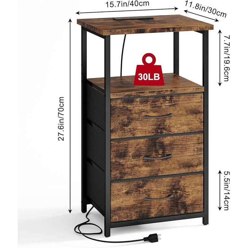12-Piece White Stoneware Dinnerware Set Kitchen Table Serving Plates Bowls New 23.82 USD Free shipping Light Duty 5/8" x 25' Garden Hose Nylon Reinforcements Easy-to-Connect Coupling 13.75 USD 14.63 USD Free shipping 6% off Electric Hoist Winch 2300LBS Portable Lift W/ Overload Protection 3in1 Control 183.3 USD 195.0 USD Free shipping 6% off 12" American Hickory Wooden Handle Hatchet 1.25lbs Camping & Gardening New 29.09 USD 30.95 USD Free shipping 6% off Stainless Steel Boston Cocktail Shaker Craft Drink Bar Parties BH63100093770MD 17.64 USD Free shipping 24 In Shrink Wrap Machine 530W Heat Sealer W/ Temperature Control Safe Durable 201.63 USD 214.5 USD Free shipping 6% off Round SwingTop Wastebasket Plastic Indoor Kitchen Bathroom 3Gal Easy Clean New 9.82 USD 10.45 USD Free shipping 6% off Baby Wooden Safety Doorway Gate Aged 6-24Months Adjustable Durable Metal Plastic 21.83 USD 23.22 USD Free shipping 6% off Industrial Farmhouse 2-Tier Serving Tray Stand 14.29" x 7.08" Wood Gray New 31.48 USD 33.49 USD Free shipping 6% off 5 Gallon Plastic Waste Can Geometric Design Durable Easy Clean Indoor Use Silver 7.26 USD 7.72 USD Free shipping 6% off 35 Lbs Fatwood Fire Starter Sticks 1 Pack Natural Pine Fireplace Campfire New 79.42 USD 84.49 USD Free shipping 6% off Folding Crab Trap 24"x22"x13" Heavy Duty Steel Wire 4 Entrances 2 Escape Rings 47.66 USD 50.7 USD Free shipping 6% off About this item 【Flexible Storage Plan】- The dimensions of this nightstand is 15. 7"D x 11. 8"W x 27. 6"H, making it a great fit for apartment, dorm rooms, or small spaces. This end table combining the industrial and rustic design, it is easy to match various scenes, such as bed side tables bedroom, side tables and coffee tables. 【Safe & Sturdy Night Stand】- This nightstand is designed for durability and comes with brown wood grain density board, sturdy metal frame, 3 non-woven drawers, and 4 adjustable leg supports. The adjustable feet greatly enhance our nightstand's stability, even on uneven floor or carpet. 【Spacious Fabric Storage Drawers】- Our fabric drawers provide ample storage space for your personal belongings (such as remote controls, keys, glasses, or a small amount of clothing and socks) to stay organized. In addition, the upper and lower wood shelves design provides additional open storage space for table lamps, clocks, photo frames or decorative items on the tabletop. In the living room, you can also place coffee and books next to the sofa for afternoon tea time. 【Night Stand with Charging Station】 - This bedroom end table comes with 2 AC outlets and a 5 ft long power supply cord. You can easily connect and charge electronic devices, such as smartphones, tablets, desk lamps, and other mobile devices, with everything within reach. Say goodbye to the trouble of insufficient sockets and wake up to enjoy a worry free charging experience. 【Easy to Install】 - You will receive all the parts, an instruction manual and all necessary tools in the package. This nightstand is designed for easy installation. Just follow the instructions carefully, and the entire process should take about 20 minutes. Brand: Product Dimensions: 15. 7"D x 11. 8"W x 27. 6"H Color: Rustic Brown Table design: Nightstand Style: Rustic You may also like 7.5ft Patio Umbrella Solar LED Lights Crank Lift Adjustable Tilt Water-Resistant 48.85 USD 51.97 USD Free shipping 6% off Folding Desk Space Saving Computer Table W/ Storage Shelf Small Spaces Office 85.53 USD 90.99 USD Free shipping 6% off Stainless Steel Boston Cocktail Shaker Craft Drink Bar Parties BH63100093770MD 17.64 USD Free shipping 10FT Patio Umbrella Auto Tilt Vented Canopy Outdoor Shade Market Garden New 49.63 USD 52.8 USD Free shipping 6% off 12-Piece White Stoneware Dinnerware Set Kitchen Table Serving Plates Bowls New 23.82 USD Free shipping 7ft Patio Umbrella W/ Tilt Feature Crank Operation Outdoor Garden Shade Canopy 46.48 USD 49.45 USD Free shipping 6% off Festival 12-Piece Dinnerware Set Mix & Match Dish/Microwave Safe Assorted Colors 52.17 USD 55.5 USD Free shipping 6% off Fringe Beach Umbrella Adjustable Tilt Metal Frame Outdoor Patio Umbrella New 80.09 USD 85.2 USD Free shipping 6% off 10ft Rectangular Patio Umbrella W/ Tilt & Crank Shade Outdoor Umbrella Garden US 54.14 USD 57.6 USD Free shipping 6% off Clear Glass Beverage Dispenser W/ Acacia Wood Lid Vintage Style Spigot 1.5Gal US 24.98 USD 26.57 USD Free shipping 6% off Urban Edge Color Block 12-pc Glass Dinnerware Set Dish/Micro/Freezer/Oven Safe 41.5 USD 44.15 USD Free shipping 6% off 4 Ft Round Raised Garden Bed Large Outdoor Metal Planter Box Rust Resistant New 53.76 USD 57.19 USD Free shipping 6% off