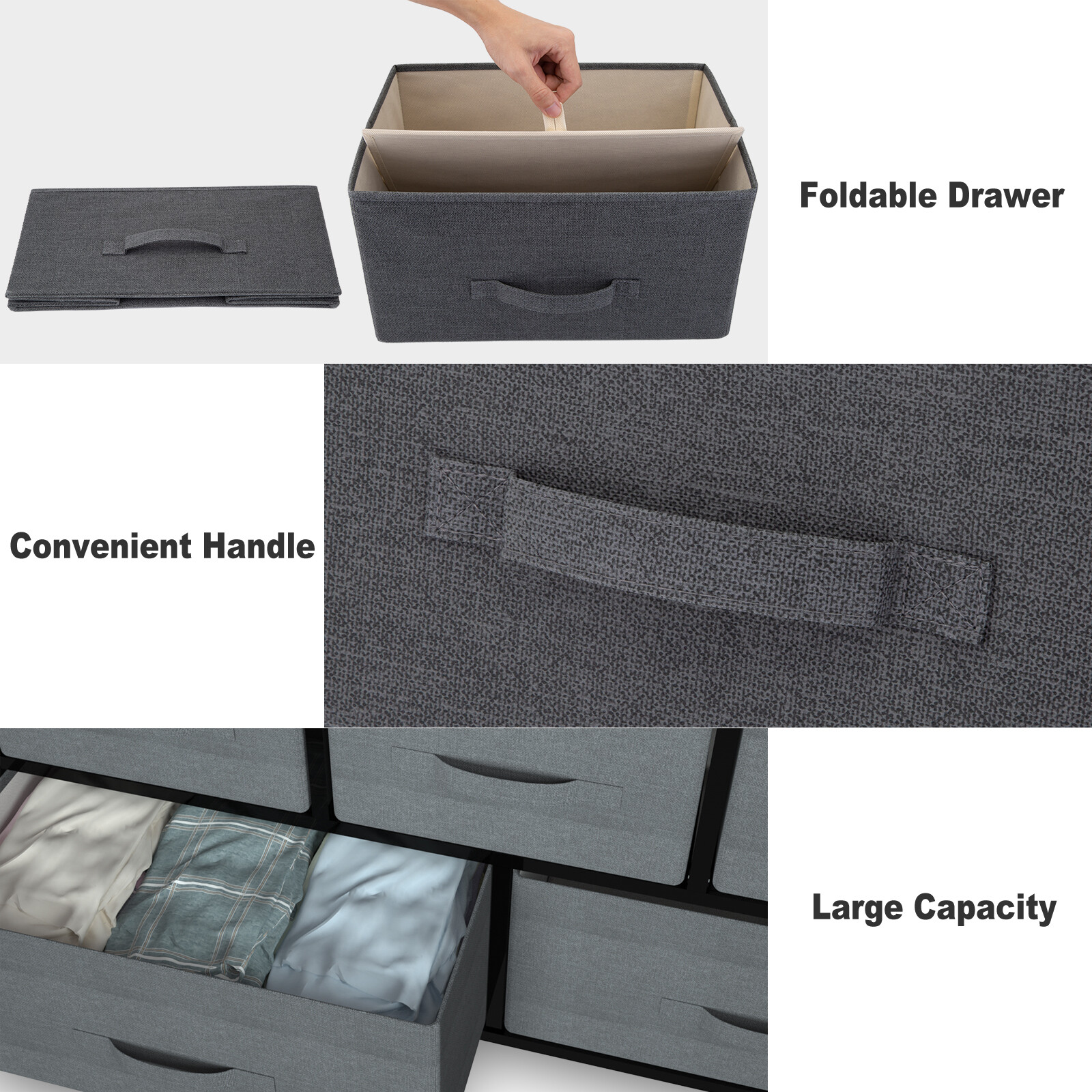 Home & Garden Home Improvement Kitchen, Dining & Bar Sporting Goods Business & Industrial Nightstand 3/4/5/7 Drawers Bedside End Table Chest Storage Organizer Furniture Store Categories Store Categories Best Selling Home & Garden String Lights, Fairy Lights Electric Fairy Lights Solar Fairy Lights LED Bulbs E27 Landscape & Walkway Lights Home Improvement Hardware Tools Home Security Faucets Bedding Blankets & Throws Home Décor Kitchen, Dining & Bar Supplies Yard, Garden & Outdoor Living Lamps, Lighting & Ceiling Fans Home Organizer Pet Supplies Dog Supplies Business & Industrial Personal Protective Equipment Work Gloves Safety Glasses & Goggles Envelopes & Mailers Clearance Sales Christmas Decorations Sporting Goods Fitness, Running & Yoga Trampolines Other Description: Our Drawer Storage Organizer is a modern and functional cabinet unit, which designed exactly for your home! The sturdy metal frame makes the product light-weight yet stable. The smooth MDF wooden top is easy to clean. You can also put any home decor, such as small plants, magazines, vases, clocks, picture frames or even snacks you like on the anti-scratch surface. It is multifunctional that is great for daily use! The drawer cabinet can be used throughout your home. You can place it in your bedroom, closet, hall, entryway, or move to anywhere you want . Features deep drawers, it can help to storage clothes, blankets, baby toys, books and keep your room always organized. Good product you should purchase it NOW! Features: - Breathable non-woven synthetic fabric - Provide plenty of storage space - MDF wood top is easy to clean - Easy pull handle - Easy to assemble - Adjustable feet : Screw-in leveling feet adjust easily on uneven ground and protect the floor from scratches. Specifications: 1.Color: Grey/Brown/Linen 2.Material: MDF (Medium Density Fiberboard), Iron, Non-woven Fabric 3.Style: 2-Drawers / 3-Drawers / 4-Drawers / 5-Drawers (Wide) / 5-Drawers (Tall) / 7-Drawers 4.Dimension & Weights: #2-Drawers Frame Dimension: (17.75 x 11.87 x 19.88 )"/ (45 x 30 x 50.5)cm (L x W x H) Drawer Dimension: (15.75 x 10.63 x 8.2)" / (40 x 27 x 20.5)cm (L x W x H) Product Weight: 7.83lb / 3.55kg Static Load Capacity of the Shelf: 22lb / 10kg Static Load Capacity of Each Drawer: 6.6lb / 3kg #3-Drawers Frame Dimension: (17.75 x 11.87 x 28.75)" / (45 x 30 x 73)cm (L x W x H) Drawer Dimension: (15.75 x 10.63 x 8.2)" / (40 x 27 x 20.5)cm (L x W x H) Product Weight: 9.92 lb / 4.5kg Load Capacity: 33 lb / 15kg Static Load Capacity of the Shelf: 22 lb / 10kg Static Load Capacity of Each Drawer: 6.6 lb / 3kg #4-Drawers Frame Dimension: (17.75 x 11.87 x 37.50)" / (45 x 30 x 95)cm (L x W x H) Drawer Dimension: (15.75 x 10.63 x 8.2)" / (40 x 27 x 20.5)cm (L x W x H) Product Weight: 12.12lb / 5.5kg Load Capacity: 33lb / 15kg Static Load Capacity of the Shelf: 22lb / 10kg Static Load Capacity of Each Drawer: 6.6lb / 3kg #5-Drawers (Wide) : Frame Dimension: ( 39.4 x 11.4 x 21.7)" / (100 x 30 x 55)cm (L x W x H) Drawer Dimension: (18.11x 10.63 x 8.46)" / (46 x 27 x 21.5)cm (L x W x H) / (11.81 x 10.63 x 8.46)" / (30 x 27 x 21.5)cm (L x W x H) Product Weight: 20.5lb / 9.3kg Static Load Capacity of the Shelf: 33lb / 15kg Static Load Capacity of Each Drawer: 11lb / 5kg # 5-Drawers (Tall): Frame Dimension: (33.50 x 11.87 x 27.55)" / (80 x 30 x 70)cm (L x W x H) Drawer Dimension: (14.17 x 10.63 x 11.81)" / (36 x 27 x 30)cm (L x W x H) / (14.17x 10.63 x 7.87)" / (36 x 27 x 20)cm (L x W x H) Product Weight: 17.75lb / 8.05kg Load Capacity: 66lb / 30kg Static Load Capacity of the Shelf: 33lb / 15kg Static Load Capacity of Each Drawer: 11lb / 5kg # 7-Drawers: Frame Dimension: (25 x 11.87x 27.75)" / (63.5 x 30 x 70.5)cm (L x W x H) Drawer Dimension: (15.55 x 10.63 x 8.26)" / (39.5 x 27 x 21)cm (L x W x H) / (6.3 x 10.63 x 5.98)" / (16 x 27 x 15.2)cm (L x W x H) Product Weight: 15.2lb / 6.9kg Static Load Capacity Of The Shelf: 22lb / 10Kg Static Load Capacity Of Each Drawer: 6.6lb / 3kg Package Content: 1 x Drawer Storage Dresser 1 x Assembling Tool Kit 1 x User Manual Instructions Notes: 1.There will be some colour difference due to the light and monitor, which is inevitable. 2:All Dimensions are manual measurement value which could exist a little error, Please understand and thanks for your kind support! 3.Please install goods based on the instruction manual. Payment Method Shipping Policy Returns Policy Contact US Payment Method We can accept the following forms of eBay managed Payment: Paypal /Google Pay /Apple Pay/ Credit card etc. Please note that there is additional clearance time for payments made via Paypal eCheque. Once the payment is credited to our account, it may take 24-48 hours to process, after which your item will be dispatched. Shipping Policy All items will ship from US warehouse and w e will dispatch the item within 24 Hours. Postage usually takes 2 to 3 business days, including handling time(excludes Saturdays, Sundays and US public holidays- these do not count as business days) We ship items only to your confirmed address. We will not be responsible for any loss because of wrong or undeliverable shipping address. If you do not receive your item in the normal period, please feel free to contact us at your times. Returns Policy Within 7 days after receiving your parcel, we offers a No-hassle 30 days exchange (replace) only if your parcel is defective due to manufacturing problem. The faulty item will be exchanged for the same model once the return guidelines are followed: 1.We might ask buyer to test the item in order to eliminate improper use factor, buyer has responsibility to follow the test correctly. 2. The item must be returned in NEW condition and with the entire original package, including cartons, parts and instructions manual etc. 3. Customer is responsible for return postage, but we will cover all expense in sending replacement. 4. Any returning must inform us first, to send back without return ID (given by LD customer service) will