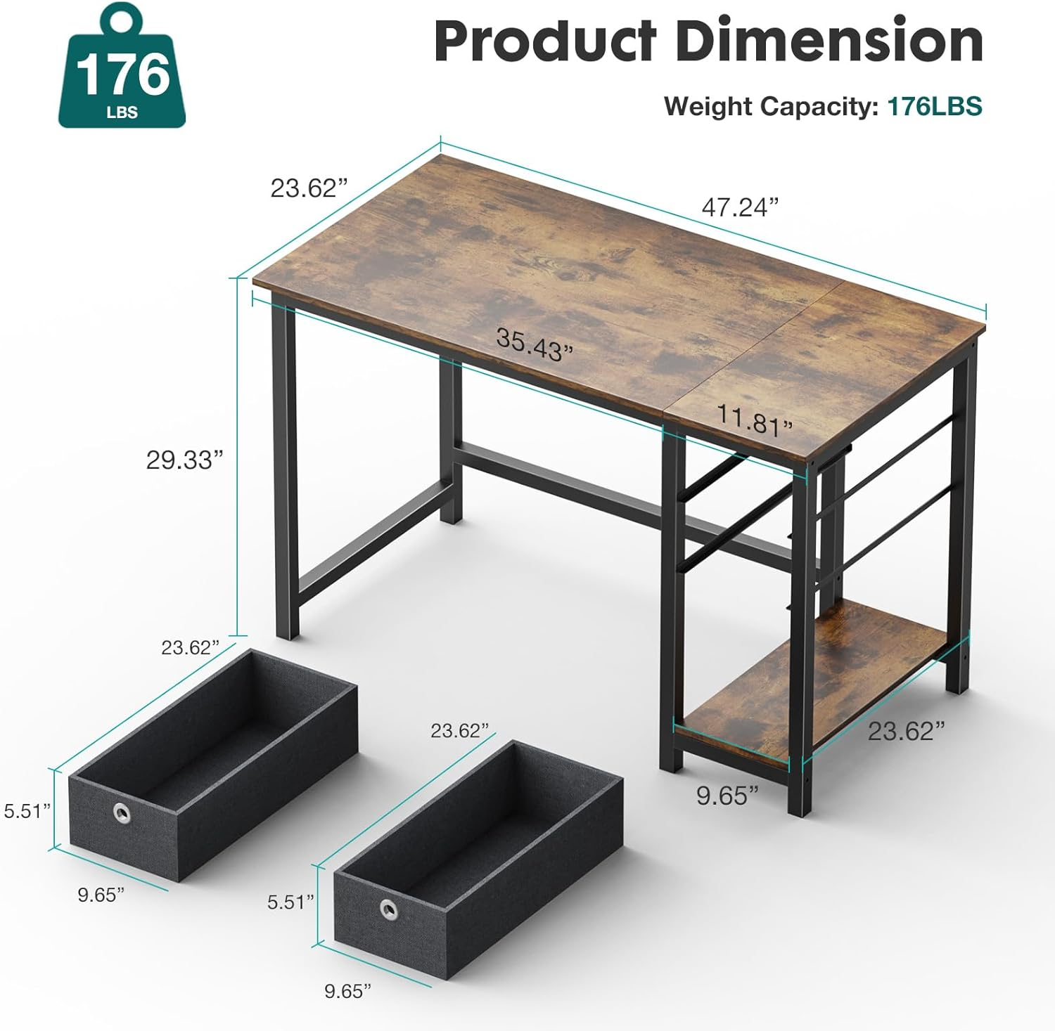 Store New Arrivals Add to Favorite View Feedback Contact Computer Desk with Storage Drawers, Small Office Desk Modern Simple Study Writing Table for Home Bedroom, Spacious 47X24 Inch Desktop with 2-Tier Drawer, Rust Description Item model number F02-47in-Ru Style Modern Country of Origin China Top Material Type Wood Number of Drawers 2 Is Electric No Shape Rectangular Desk design Computer Desk Drawer Glide Mechanism basic glide mechanism (e.g., plastic or wood) Room Type Bedroom Assembly Required Yes Drawer Type Fabric Drawers Finish Type Polished Included Components Desk, Manual Working Surface Diagonal Length 65.75 Inches Model Name Computer Desk with Storage Drawers Has Finished Back No Furniture leg material Metal Item Weight 41.9 pounds Recommended Number of People for Assembly 2 Top Color Rust Brown Special Feature Compact Base Color Rust Brown Mounting Type Freestanding Color Rust Brown Furniture Finish Polished Base Material Metal Storage Options Drawers Recommended Uses For Product Office, Working, Writing Product Dimensions 23.6"D x 47.2"W x 29.7"H Size 47 Inch 【Large Storage Office Desk with Drawers】 Enjoy ample workspace and keep essentials handy with the Large Storage Capacity Desk featuring two easy-to-assemble fabric drawers and a shelf. Relevant for both work and study, it offers optimal storage space for documents, supplies, and more, ensuring a clutter-free , organized desktop. 【Attractive & Sturdy Computer Desk】 Experience a perfect blend of style and durability with this Attractive & Sturdy Computer Desk. The spacious desktop, crafted from waterproof, easy-to-clean particleboard, meets EPA and CARB safe air standards. Its metal frame ensures reliable, all-day support. 【Modern & Simple Style】 Discover modern elegance for any space with this desk designed in a Modern & Simple Style. Versatile and stylish, it complements all decor styles. The spacious tabletop accommodates a PC, laptop, coffee cup, mini plant, keyboard, and more. Ideal for a bedroom, study room, or small corner space. 【Wide Application】 With its Wide Application, our office desk serves various settings like home, office , reading room and more. Available in classic shades, it makes a thoughtful gift for birthdays, housewarmings, and back-to-school days. Embrace a refined work and study environment with this modern desk. 【Easy Assembly & After-sale Service】 Enjoy a hand green friendly setup experience with our desk's Easy Assembly instructions. All components are clearly labeled for simple, step-by-step assembly. Our professional after-sale service team is on hand to assist should you encounter any damaged parts or scratches on arrival. Product Description ABOUT US We offer the best prices around on high quality products. Our E-store includes media such as books, movies, music and games while offering electronics, toys, sporting apparel, clothing, tools, general home, garden items and more. SHIPPING We are always working hard to ensure your package arrives as soon as possible. Please understand that some factors like weather, high postal traffic, and the performance of shipping companies are outside of our control. We offer free shipping to the lower 48 states and ship within 2 business days of payment, usually sooner. We do not accept P.O. Boxes. Please provide a physical address. For shipping outside of the continental USA, we only use eBay's Global Shipping Program.The item is shipped to KY and then sent to the rest of the world. International customers are responsible for all duties and taxes. Continue to check out in order to calculate costs for shipping the item to your country. Messages regarding eBay's Global Shipping Program MUST be directed at eBay EXCLUSIVELY. RETURNS We offer a 30-Day Return Policy on items which you are not completely satisfied with. You have the option for a full-refund or an exchange of the item. No returns are available on items shipped outside of the USA. PAYMENT We accept PayPal. CONTACT US This page content is yet to come Please ad us to your favorite seller and visit again later Thank You CUSTOMER SATISFACTION We try our very best to make sure every customer is completely satisfied. If there's a problem, message us! We're happy to help. WE ACCEPT Copyright © 2021 AutoDS. | All Rights Reserved