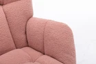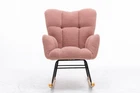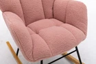 About This Item: Product BOM: Soft Teddy Material+Foam Filling+Wooden Frame+Black Paint Metal Base+Wooden Rocking Legs+Upholstered+Floor Protection And Isolation Layer; Product Feature:Rocking; Use Case:Indoor,Accent Chair,Nursery Chair,Rocking Chair,Glider Chair,For Living Room,Bedroom and Other indoor space; Product Capacity: 250 LBS Product Assembly: The assembly is so simple that two person can assemble it in 25 minutes; Specification: Color: Pink Material: Teddy Filler: Foam Product Dimensions: 31.5"D×27.6"W×37.4"H Weight:26.46 LBS
