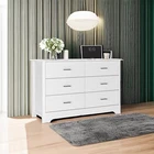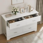 Product Description Modern Chest of Drawer Ample Load Bearing and Storage Space 6 Drawers for Versatile Storage Options With 6 deep double drawers with interior size 19.09"W x 12.4"D x 5.71"H , this white drawer dresser offers large amount of storage capacity to organize your overflows More Details Large Capacity Drawer With each drawer measuring 19.09"W x 12.4"D x 5.71"H, you can store books, toys and other essentials to help keep the room neat and organized. Durable and Sturdy Crafted of solid wood legs, premium maufactured wood, easy-to-clean waterproof finish , and includes smooth metal sliding rails Modern Minimalist Style Complimented by its glossy white rectangle stripe design, silvertone drawer pulls, side moldings and scalloped pedestal Spacious Table Top Top Size: 46.8"W x 15.6"D / Hold up to 275lb. You can display your favorite works of lamps, vases, fashion magazines or bouquets and more. Specification Color White Material Solid wood legs and maufactured wood Product Size 15.6"D x 46.8"W x 32"H Drawer Size 19.09"W x 12.4"D x 5.71"H Top Board Weight Capacity 110 lbs Drawer Weight Capacity 25 lbs Assembly Required Yes What should I do if there are missing or damaged parts? Please confirm the numbers or letters of this parts according to the instruction, with which we can exactly resend the pieces you need What should I do if I don't find the instruction in the package? Please be easy, we can send you a digital instruction in PDF What should I do if the drawers get stucked and can't be rightly closed? We advice to check whether the drawer sildes are installed with the right holes for the first, it should be done exactly as the same in the manual. And if you need, we could provide further assistance