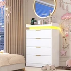Menu 1. We require immediate payment. 2. We currently accept payment via eBay managed payments only. 3. Once payment is cleared, we will dispatch your shipment within 1-3 business days. Please refer to the "Shipping" tab for more information regarding shipping speed to your destination. White Dresser with LED Lights, Wooden LED Dresser, 4 Drawer Chest with Charging Station, Tall Chest of Drawer Closet Organizer for Bedroom, Living Room, Entryway, Hallway Product description 【White Dresser with LED Lights】This 4 drawer dresser is equipped with multi-color RGB LED light strips, colors and brightness can be freely adjusted through the button and App, creating a warm and stylish atmosp in any space. Combined with the dresser's fashion design, creates a visually stunning floating effect at the top. 【Dresser with Charging Station】 dresser for bedroom equipped with a built-in power outlet, which creates convenience for device charging. It has 2 AC outlets and 2 USB ports, make sure you can charge your laptop, mobile phone, desk lamp and other small appliances anytime, anyw, without the hassle of searching for outlets. 【Reasonable Storage Space】Overall Dimension: 15.75"D x 27.56"W x 39.96"H. Our 4 drawer dresser offers ample storage space with 4 spacious drawers and a generously sized top storage area. Each drawer is easily accessible and can be used to store frequently used items, such as clothes,, blankets, clocks, lamps. Keeping things organized and tidy. 【Premium Materials and Modern Design】The bedroom dresser is made of white finish premium MDF for long-term use, scratch resistant. The 4 drawers slide easily on ball bearings and the gold metal handles allow you to push and pull the drawers without effort, with its gold metal handles creates a harmonious balance of style and practicality. 【Multipurpose Modern Dresser】Its ample storage space and sorting function make it perfectly match with bedroom, living room, hallway, or entryway, you can transform the dresser organizer into a multipurpose storage station. The spacious tabletop serves as an elegant platform to display framed photos, artistic accents, and other decorative items. 【Easy to Assemble】The chests of drawers come with detailed instructions and an installation video. Each hardware component comes in its own separate packaging. It is recommended to follow the steps in the accompanying instructions, lay out each board by number,and then install. 【Excellent Service and Packging】Each package is carefully wrapped with shock-absorbing foam and protective wooden boards to ensure safe delivery. If t are any question with your item, such as scratch, breakage, or missing parts, please contact us freely, our professional customer service team will respond asap. PLEASE MESSAGE US IF YOU HAVE ANY OTHER QUESTIONS, AND MANY THANKS FOR READING ALL OF THIS. Copyright ©#. All Rights Reserved.