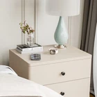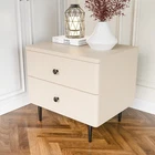 Modern Wooden Nightstand Bedside Table Bedroom End Side Desk Table w/ 2 Drawers Introduction: Simply Scandinavian design with an updated midcentury modern look, this clean-lined nightstand rests on metal corner legs with gold finish, while the rest of the piece is constructed from Solid & MDF wood that outer layer covered with a soft and smooth synthetic fibre leather. 1-Drawer provide enough storage for your bedside essentials. Its refreshingly minimal, clutter-free styling is not only functional but is warm and inviting as well. A perfect chioce fits neatly next to your bed or living room sofa. Features: Minimal Assembly Required - Get ready to enjoy this nightstand by only installing 4 table legs. Midcentury Modern Design - This stylish nightstand set embraces the iconic mid-century aesthetic, characterized by sleek curves, clean lines and a timeless design that effortlessly complements any bedroom or living room decor. Wide Applications - Whether placed in the living room, bedroom or study, this nightstand set adds both practicality and charm to your home decor, making it a versatile piece for various spaces. Smooth Metal Glide - All drawers sit on roller glides and are fully extendable, making it easy to access your items. Specification: Color:B eige Specific use: Bedside table Application: Home Office, Living Room, Bedroom, Hotel, Apartment, Office Building, Hospital, Locker, Hall, Villa, Living Room, Bedroom, Kitchen or Hotel Office Lobby Design style: Modern Material: Solid wood+Microfiber leather+Metal Appearance: Modern Drawers: 2 drawers Size: 20 in*16 in*14 in