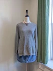 Elevate your wardrobe with this modern and minimalist boho grunge Madewell gray sweater. This sweater features a comfortable fit and a stylish design. Made with high-quality materials, this sweater is perfect for any occasion. The gray color is versatile and easy to style, while the Madewell brand is known for its quality and attention to detail. Ideal for those who want to stay on-trend while still enjoying comfort and practicality. Tagged: small, fits small to medium Pit to pit: 20" Length: 27" Condition: excellent condition Made by: Madewell Fit: voxy Fabric: wool blend Stretch: yes Weight: lightweight Closure: pullover Pockets: no