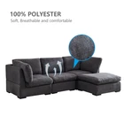 MODULAR SOFA:Each seat of the modular sofa can be moved freely or fixed with screws from the bottom,so that it can be meet with your different needs. COMFORTABLE:The sofa frame is made of solid wood, springs, and high elasticity sponge, making it not too hard and elastic for you to sit on. In addition, the soft and skin friendly fabric and down filling cushion make you feel very comfortable. HIGH QUALITY MATERIAL: The sofa fabric is 100% polyester, with a soft and skin friendly texture, and the sofa legs are solid wood.Seat cushion is filled with down and polyester, providing a very comfortable sitting experience. Sitting on them after a tiring day will make you feel incredibly relaxed. Whether for leisure or relaxation, this sofa is a perfect choice. ASSEMBLY: Assembly is needed. All the tools are included which is hidden in the bottom of each seat.An adult can finish assembling within 30 minutes. SEVERAL PACKAGE DELIVERY:The whole set L shape sofa would be shipped in four separated boxes,we ship them on the same day but the carrier may deliver to your address on different days,if so,please wait patiently and make sure you get all boxes.Any questions,don't hesitate to contact with us. Product Specification Product Type L Shape Modular Sofa(Three Single Seat+One Ottoman) Overall Dimension 99"L x 68.9"W x 31.5"H Overall Product Weight 195.8lbs Number of combined pieces 4 Seating Capacity 4 Upholstery Material Component 100% Polyester Seat Cushion Fill Material Down+Polyester Back Cushion Fill Material Polyester Frame Material Solid Wood+Plywood+Spring Wood species Eucalyptus Leg Material Solid Wood(Rubber wood) Leg Color Dark brown Seat Construction Sinuous Springs Foam Density 1.7lbs./cu.ft. Arm Type Oblique Toss Pillows No Removable Cushion Cover Yes Reversible Cushions No Storage No Weight Capacity 300lbs each seat On Mar 6, 2025 at 22:58:38 PST, seller added the following information: