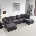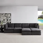 Modular Down-Filled Sofa with Ottoman in Soft Linen Fabric