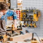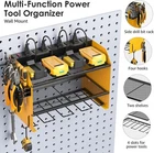 Modular Power Tool Organizer Wall Mount with Charging Station. Garage 4 Drill Storage Shelf with Hooks, Screwdriver, Drill Bit Heavy Duty Rack, Tool Battery Holder Built in 8 Outlet Power Strip. Wall mount power tools organizer come with 4 slots, 4 hooks and drill bit rack, built-in power strip, double layer structure can keep rechargeable tools organized in the work area and save your bench space. The tools in the picture are for demonstration purposes only and are not included. Power tool organizer with charging station, come with 8 outlets. If you have a lot of rechargeable tools, you can charge everything right in the rack and avoid searching for sockets. 6ft power cord included. Very convenient for charging your tool batteries, All-in-one design and the metal power strip with surge protection of 1200J, Able to protect your device to a certain extent. Utility rack size: * * H:12in. Add a tool box on the side to store multiple types of gadgets - Commonly used drill bits, tweezers, screwdrivers, also equipped with four hooks to hang tools such as tape measures or wrenches. to increase the diversity of storage. Easy to assemble and mount on a peg board, If you need more storage space, you can connect the two shelves (or more) by screws. Each layer of the grid can support a maximum weight of 33IB. Made from heavy gauge steel. More product Tools Organizer Show Tools Organizer 3-Layer See Details Large Tools Organizer Add to Cart Tools Organizer Cabinet Add to Cart Tools Cart Power Strip See Details Tools Cart Power Strip Add to Cart Tools Cart Power Strip Add to Cart Large Tools Organizer Add to Cart Customer Reviews out of 5 stars 1,594 out of 5 stars 76 out of 5 stars 4 out of 5 stars 7 out of 5 stars 151 out of 5 stars 249 out of 5 stars 189 Price $$ $$ $$ — $$ $$ $$ Layer 3 9 6 5 5 5 9 Drill Slots 4 8 4 8 8 6 8 Side Panel Solid 4 Tool Storage Accessories Pegboard Pegboard Pegboard Pegboard Pegboard Hooks 4 Hooks 8 Hooks 4 Hooks and 4 Pegboard Hooks 5 Hooks and 4 Pegboard Hooks 4 Hooks and 4 Pegboard Hooks 4 Hooks and 4 Pegboard Hooks 4 Hooks and 4 Pegboard Hooks Feature Modular Large Cabinet Floor stand and wheels Floor stand and wheels Floor stand and wheels Large Charging Station 8 Outlets Individual Switches 8 Outlets 8 Outlets 12 Outlets 8 Outlets 8 Outlets 8 Outlets